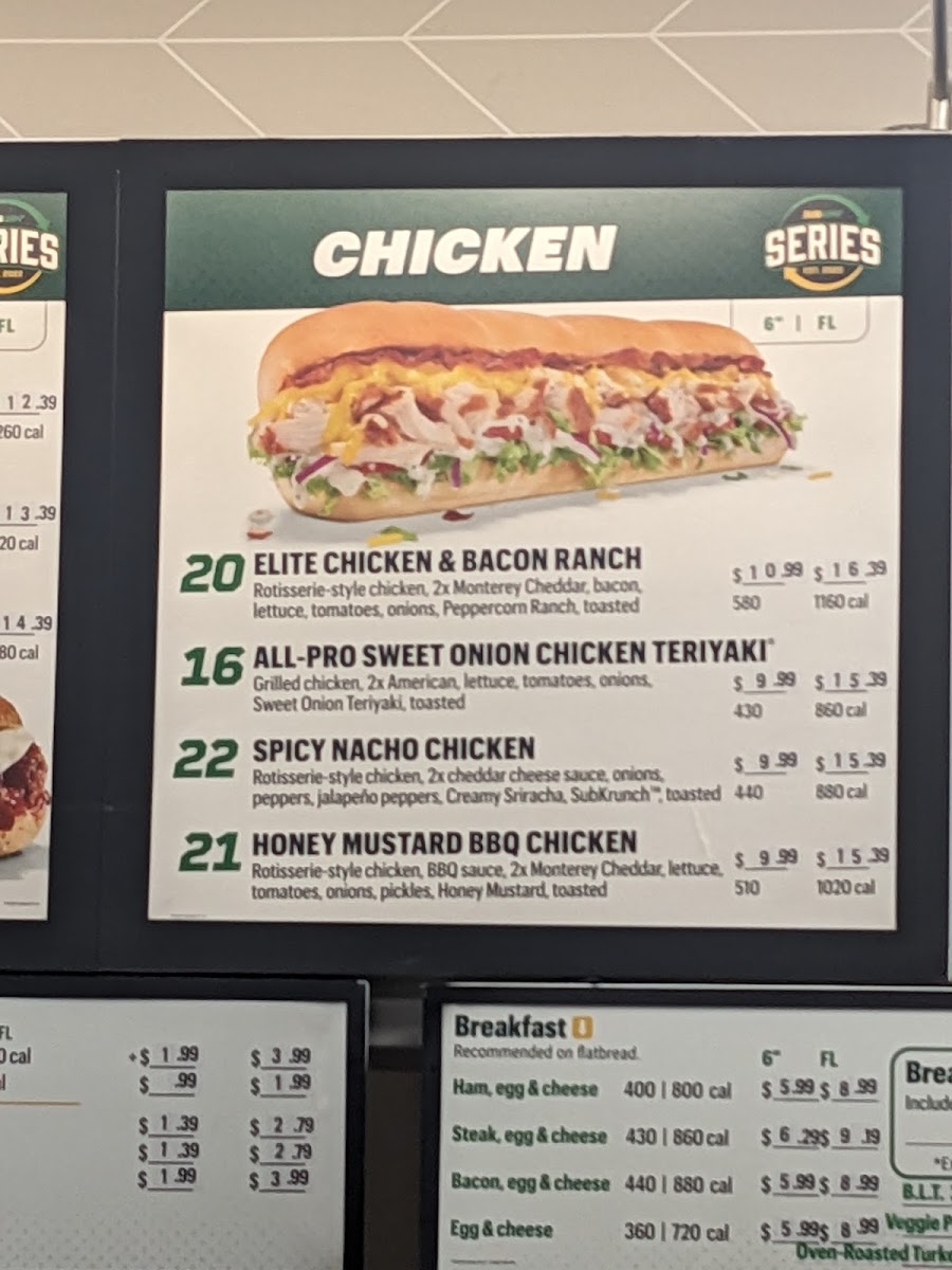 The menu at this Subway location offers a straightforward selection that fits well with daily routines and casual dining moments. Whether you’re grabbing a quick breakfast, a satisfying lunch, or a simple snack on the go, the choices reflect familiar, comforting flavors with a focus on freshness and convenience.
